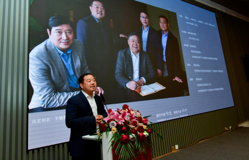 上海文信家具(集团)有限公司副总经理唐明辉做企业介绍。文信家具在全国5大城市拥有8家工厂,面积超12万平方。2019年企业通过品牌培育,帮助文信重新做了战略定位,使企业产值实现了质的飞跃,从2018年的3.65亿增长到2022年的7.6亿。