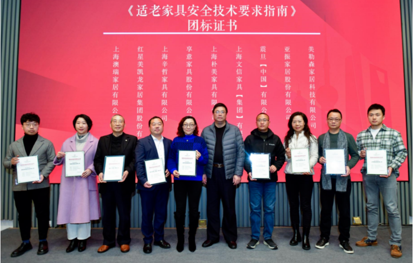 上海家协为参与编写《家具生产经营企业诚信评价实施指南》团体标准、《适老家具安全技术要求指南》团体标准的企业颁发证书。