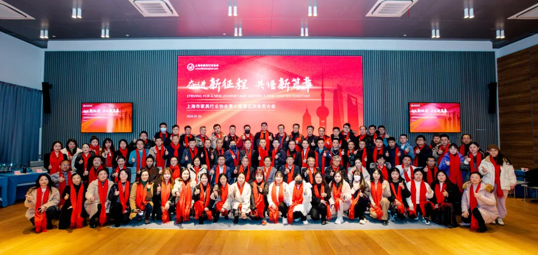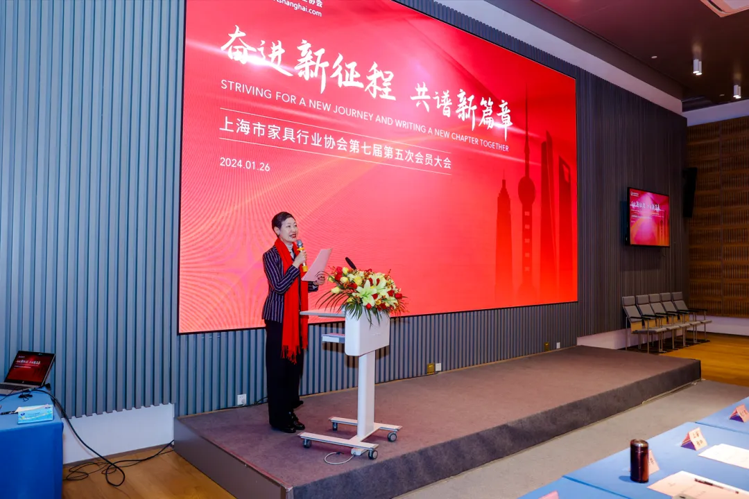 2024年1月26日下午,上海市家具行业协会第七届第五次会员大会在上海亚振家居1865园区会议厅召开。工信部品牌专家组组长周宏宁、上海市经信委综合规划处处长赵广君、上海市经信委都市产业处副处长陈建林、上海市家具行业协会会长高伟以及上海家协会员参加大会。上海市家具行业协会秘书长李霞主持了大会,大会以“奋进新征程,共普新篇章”为主题,回顾2023,展望2024。