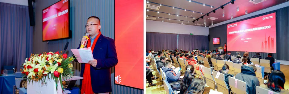 上海家协综合部主任陈宇浩向大家汇报上海家协2023年度新增会员及退会会员名单,秘书长李霞宣读了《上海市家具行业协会七届理事会延期换届的决定》、《关于聘任陈宇浩为上海家协副秘书长的决定》。