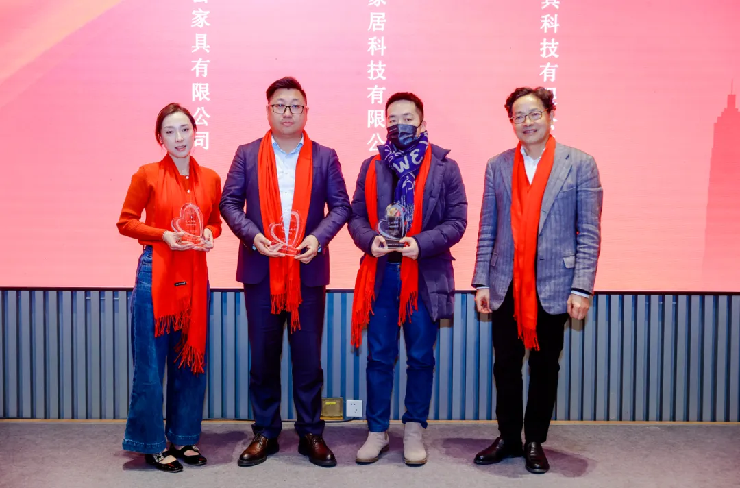 工信部品牌专家组组长周宏宁、上海市经信委综合规划处处长赵广君、都市产业处副处长陈建林、上海市家具行业协会会长高伟为获奖企业颁奖。