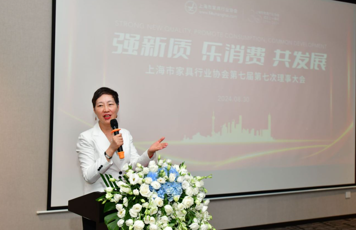 2024年8月30日,上海市家具行业协会第七届七次理事会在合生新天地的简合国际家居会议厅顺利举行。本次理事会以“强新质、乐消费、共发展”为主题,邀请了简合国际家居创始人雷旻及红星美凯龙养老项目主理人丁绵绵围绕当下社会经济形势做了主题分享。会议由上海市家具行业协会秘书长李霞主持。