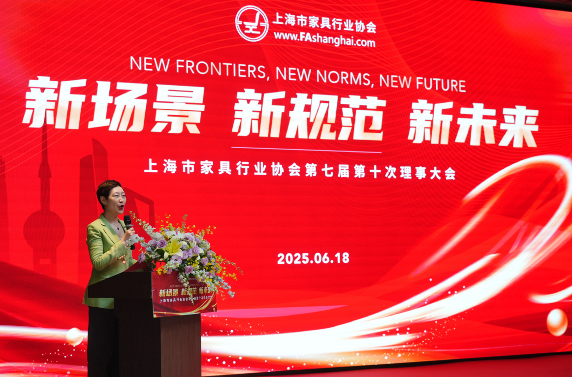 2025年6月18日,上海市家具行业协会第七届十次理事会在中成智谷文化创意园区小秀场成功举办。本次会议以“新场景,新规范,新未来”为主题,重点审议了上海市家具行业协会第八届理事会换届相关事项,并围绕协会五年来的工作成果、财务情况等议题展开审议与表决,为协会第八届顺利换届奠定基础。本次理事会由上海市家具行业协会秘书长李霞主持。