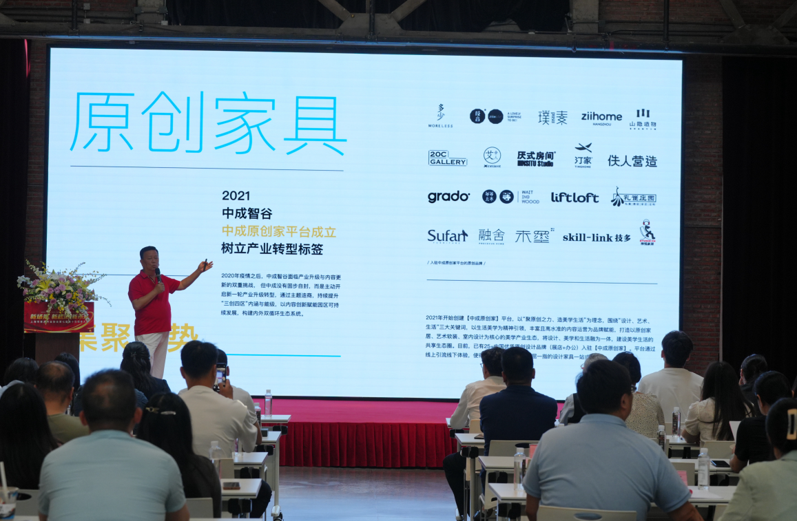 中成智谷园区前身为中成进出口设备储运仓库,自2013年起转型为集办公、生活、居住、休闲于一体的融合型产业社区,现已成为吸引6000名白领集聚的创意高地。2021年,园区创建“中成原创家”平台,致力于打造以原创家居、艺术软装、室内设计为核心的美学产业生态,目前已汇聚25+优质原创设计品牌,成为上海首屈一指的设计家具一站式采购地。