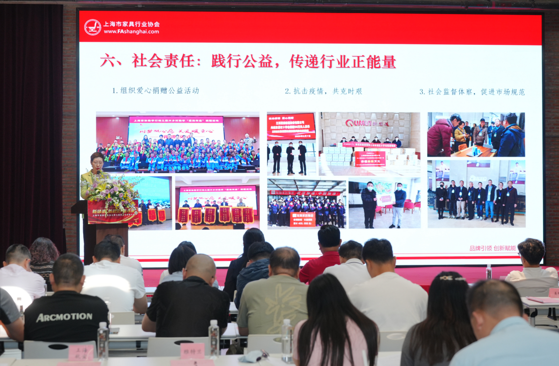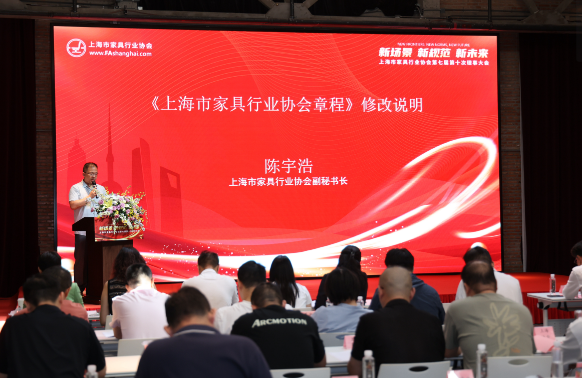 随后,李霞秘书长向理事会作了上海家协第七届理事会工作报告。报告从党建引领、品牌建设、创新赋能、服务规范、平台桥梁、社会责任、融媒体、团队建设等八个方面,全面总结了七届理事会5年来的工作及成绩,同时也指出了需要提高的方面。该报告经大会审议后顺利通过。上海家协副秘书长陈宇浩向大会作了《上海市家具行业协会第七届理事会财务收支情况报告》。报告显示,协会财务资产状况保持平稳增长态势,财务结构不断优化,综合实力持续提升,展现出良好的发展势头,并顺利通过大会审议。陈宇浩副秘书长还向大会作了《上海市家具行业协会章程》修改说明。随着协会的发展和行业环境的变化,对章程进行适当修改以更好地适应实际需求,该修改说明经审议后获得通过。