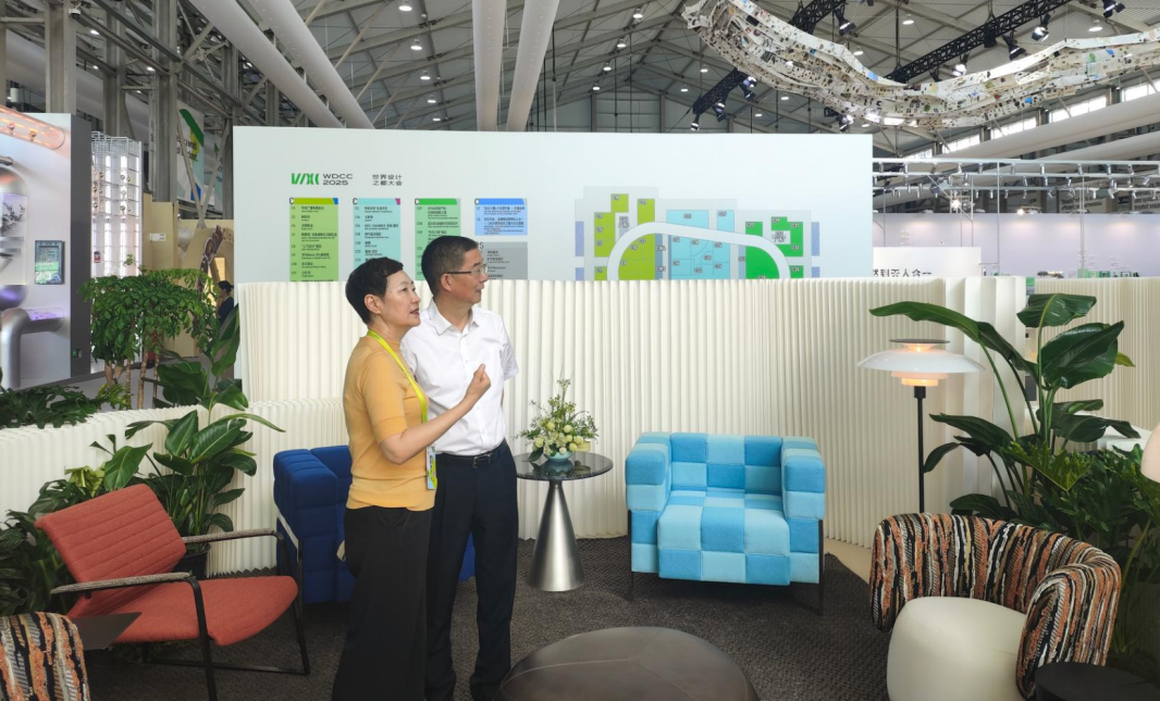 最后,李霞秘书长还陪同马书记参观了WDCC大会的“设计100”展区及其他特色展区,马书记对“设计100”内展出的优秀品牌十分认可,尤其对亚振家具的绿色“平安椅”的工艺和设计赞赏有加。